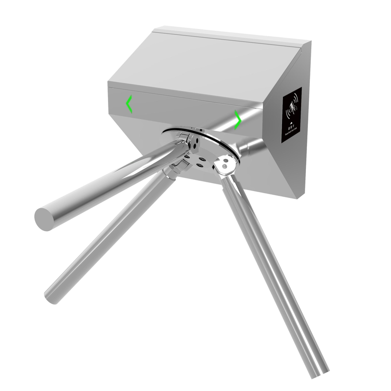A wall-mounted tripod turnstile is a type of access control turnstile gate that uses three rotating arms, similar to a traditional tripod turnstile, but is designed to be mounted directly onto a vertical surface (like a wall or pillar) rather than having a full floor-standing base.